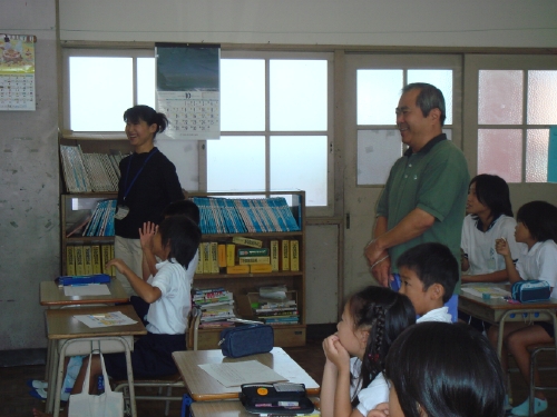 朝から(飯塚市立片島)小学校へ加藤先生の特別授業のアシスタントをしに行った。